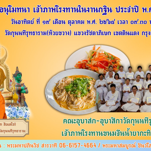 วัดกุนนทีรุทธารามขออนุโมทนา เจ้าภาพโรงทานในงานกฐิน ประจำปี พ.ศ. ๒๕๖๘